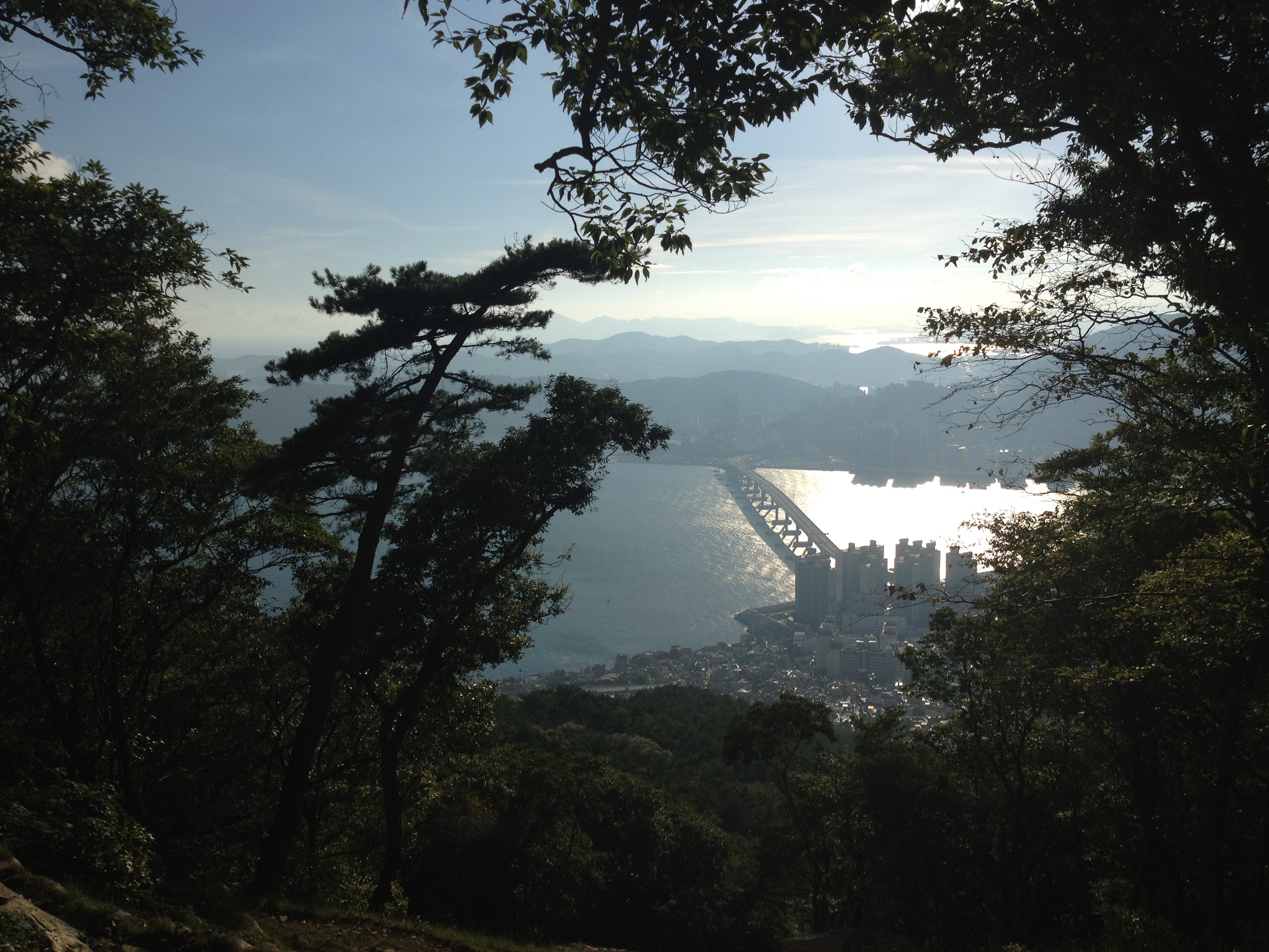 동삼동 쪽으로 내려오는 길에는 나무가 그리 울창하지 않다. 바다에서 불어오는 바람 때문이었는지, 봉래산의 거대한 능선이 펼쳐지고, 그 아래로 사람들이 빼곡히 사는 모습, 바다 저 멀리까지 보인다.