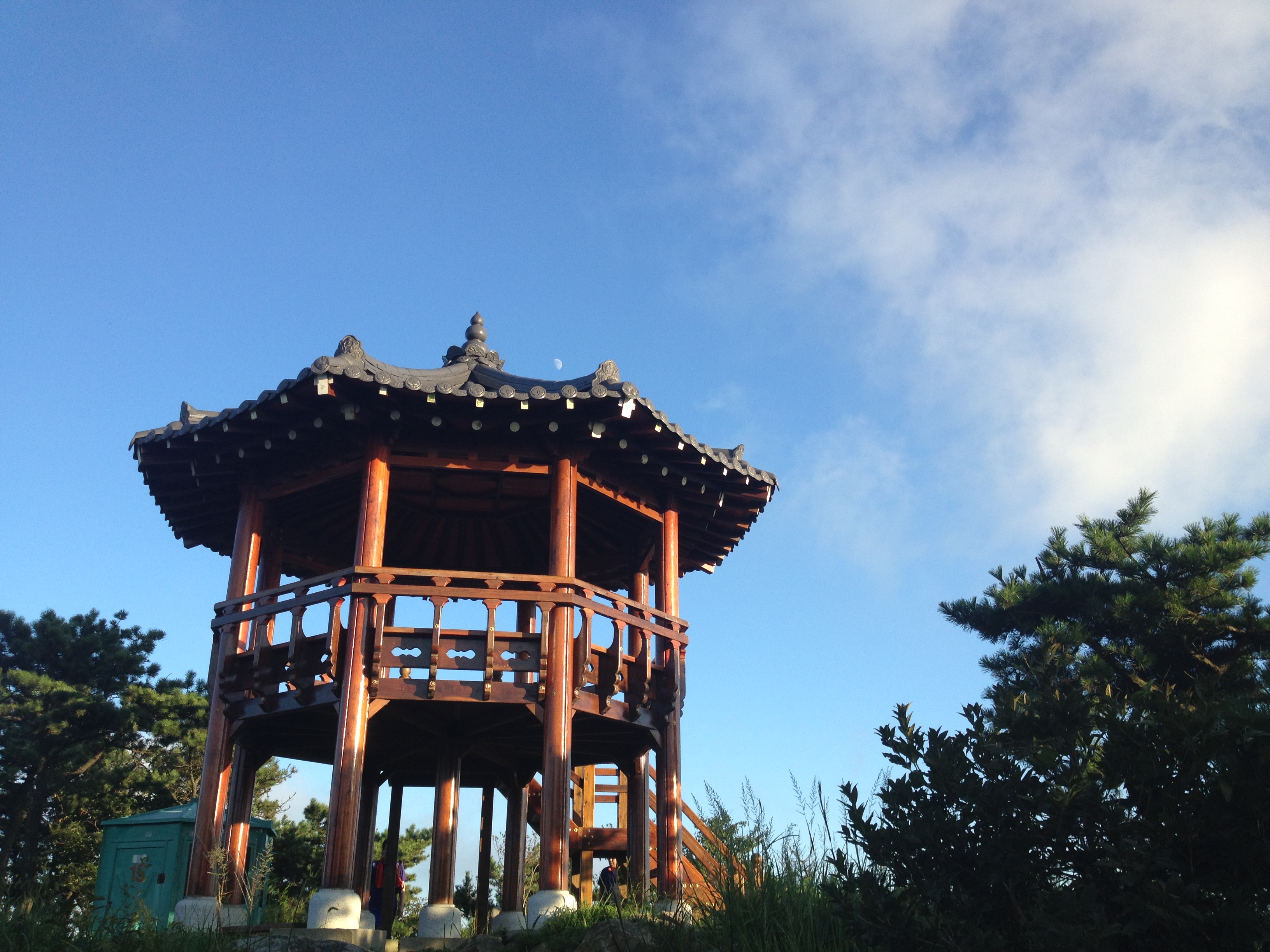 봉래산 능선을따라서 동삼동 쪽으로 넘어가는 길에 정자가 있는데, 이 정자에서도 바다가 아래로 내려다 보인다.