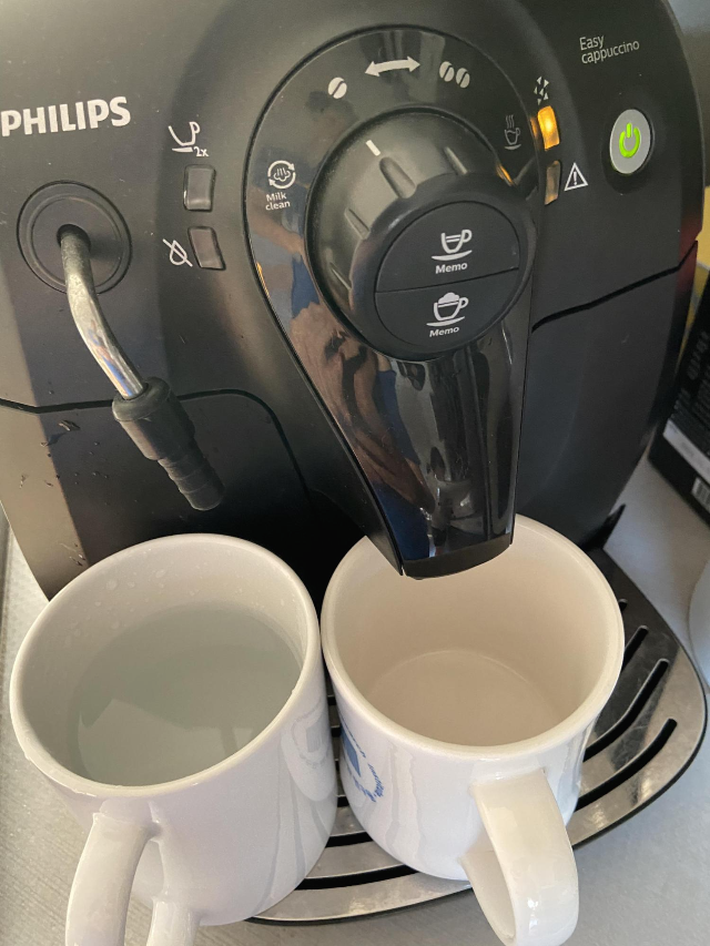 9. 커피 추출 버튼을 눌려서 이물질 없는 깨끗한 물이 나오면 전체 과정을 종료합니다.