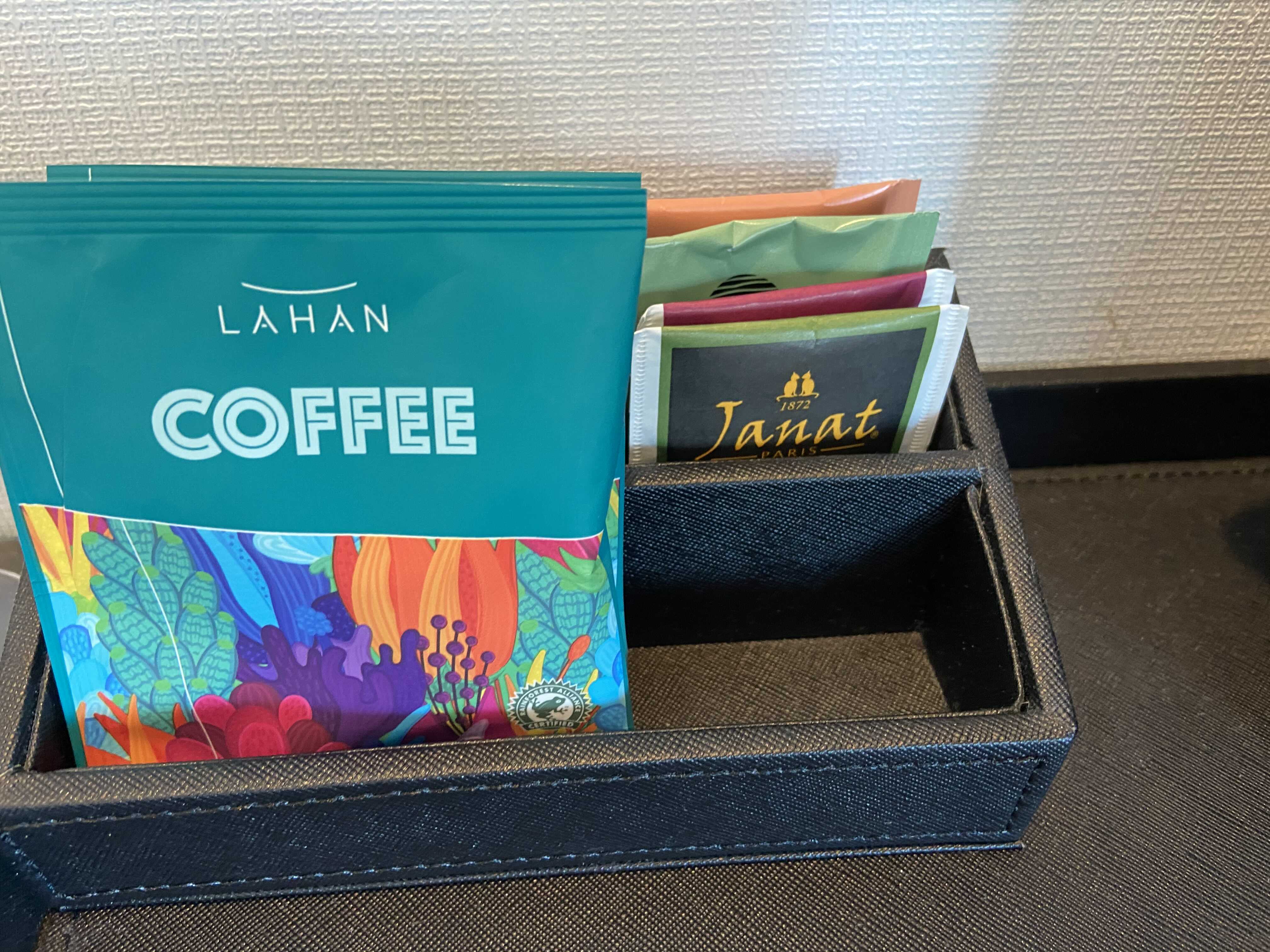 최신 호텔 중에는 방에 커피 머신을 구비해 놓는 경우도 많은데, 티백 커피와 티백 차를 제공한다. 커피는 호불호가 있을 수 있다. 차는 괜찮았다.