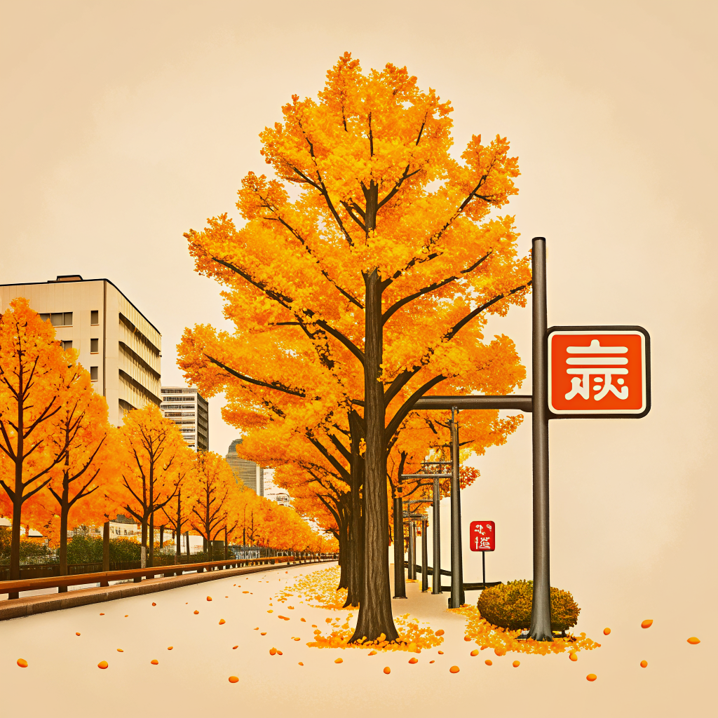 가을이 되면 미도스지 거리의 은행나무가 노랗게 물들어 유명한 가로수길이 됩니다.